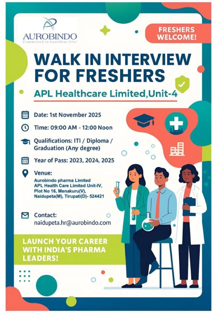 APL Healthcare Limited (a unit of Aurobindo Pharma Ltd) is a leading pharmaceutical manufacturing facility known for its advanced technology, high-quality standards, and strong global presence. The company offers great opportunities for young professionals to start their careers in the pharma sector with world-class exposure and structured learning.