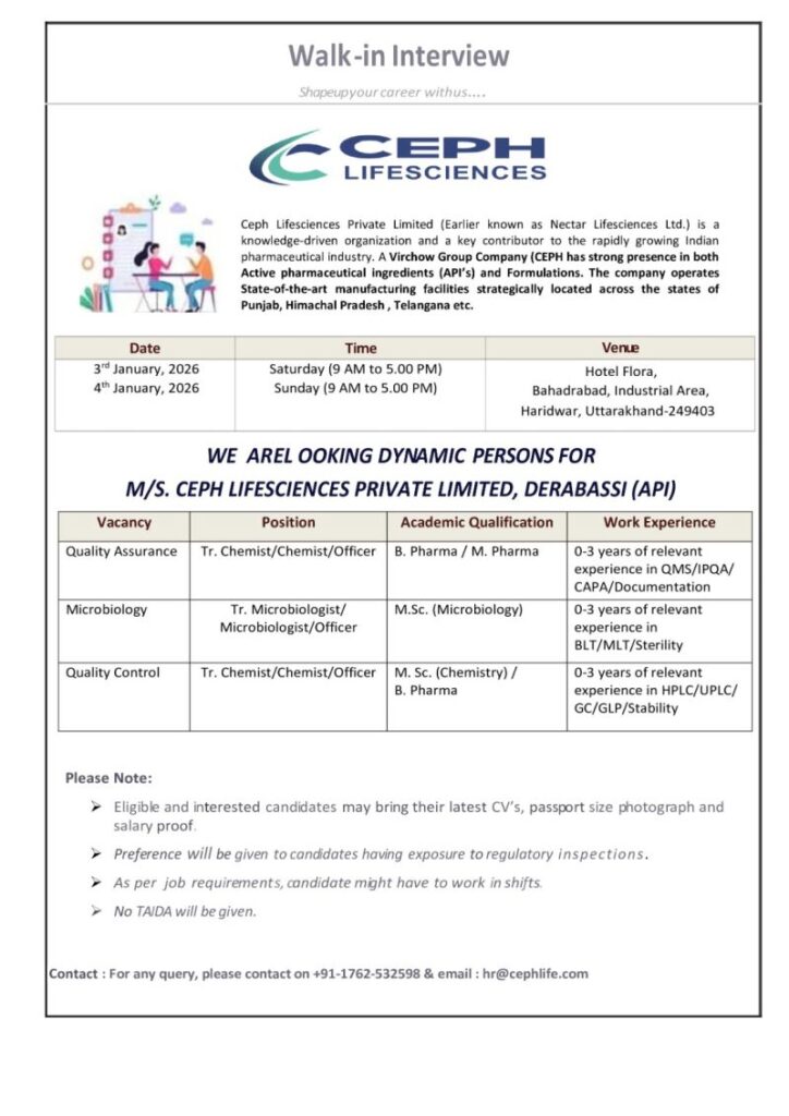 Hiring For Derabassi (API Unit)