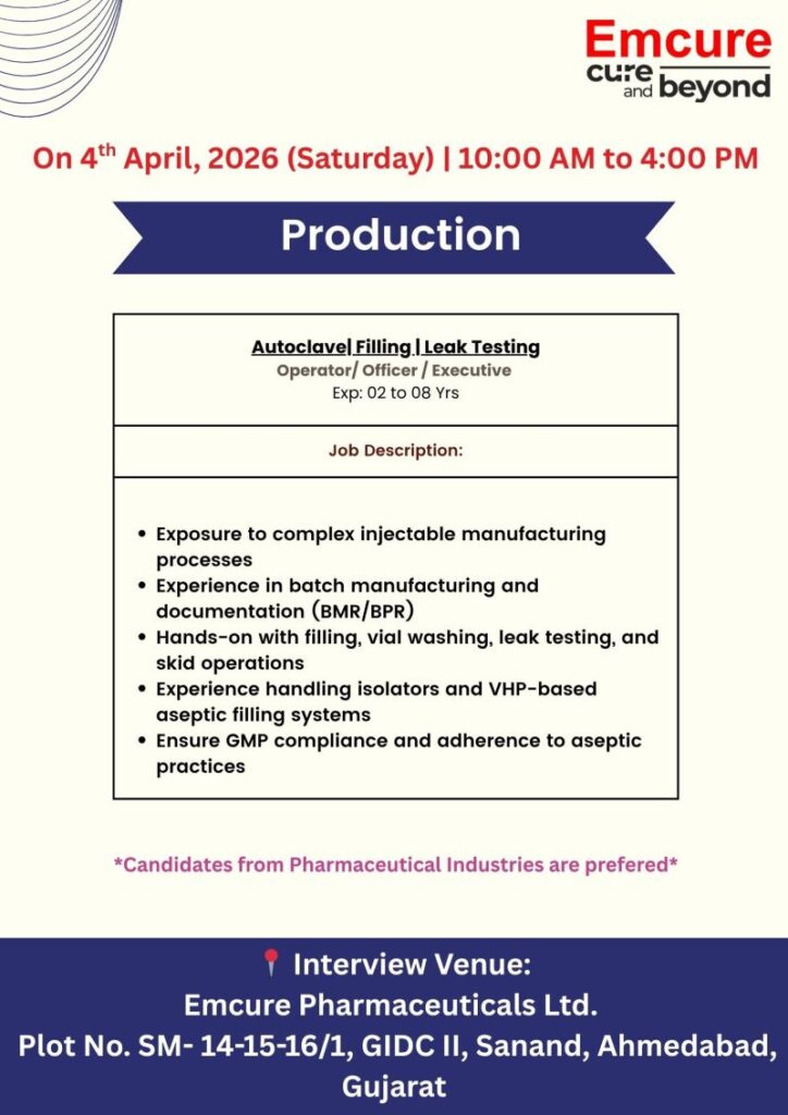 - Only candidates with relevant pharmaceutical experience are preferred