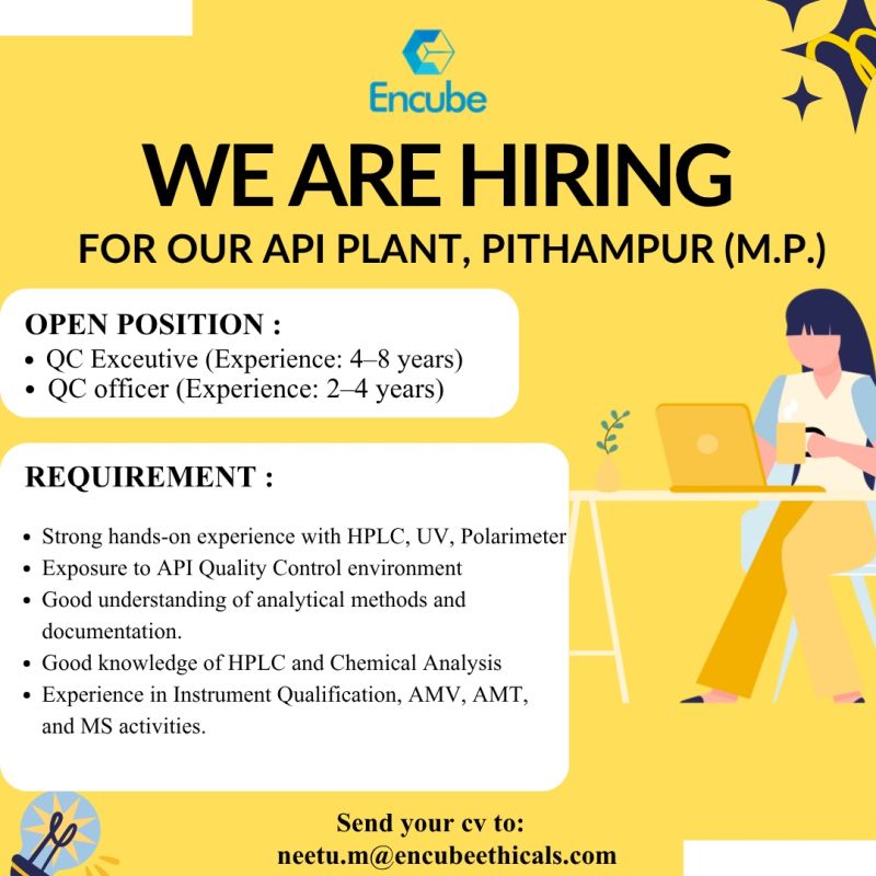 Encube Ethicals is a leading integrated pharmaceutical company specializing in topical formulations. With a strong presence in research, development, and manufacturing, Encube focuses on innovation, quality, and compliance. The company’s API plant at Pithampur, M.P., provides a dynamic environment for professionals to contribute to high-quality pharmaceutical production and quality control.