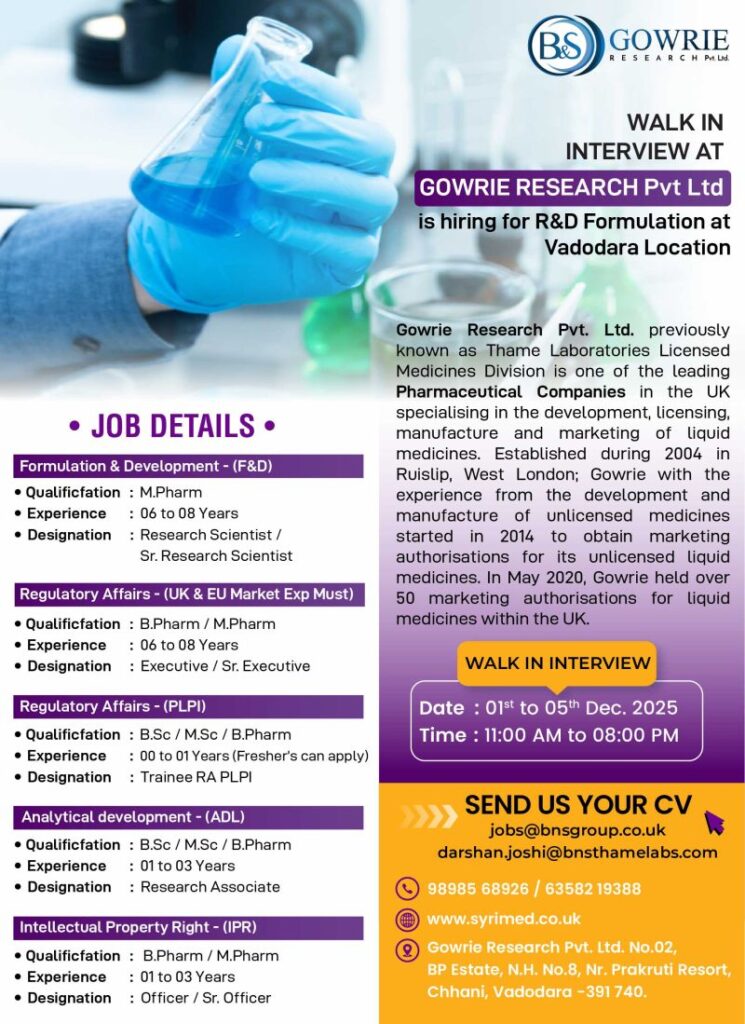 Gowrie Research Pvt. Ltd., formerly known as Thame Laboratories Licensed Medicines Division, is a leading UK-based pharmaceutical organisation specialising in the development, licensing, manufacturing, and marketing of liquid medicines. Established in 2004 in Ruislip, West London, the company has extensive expertise in unlicensed medicines and secured marketing authorisations for its liquid medicines in 2014. By May 2020, Gowrie held over 50 marketing authorisations within the UK, reflecting its strong global footprint and innovation-driven approach.