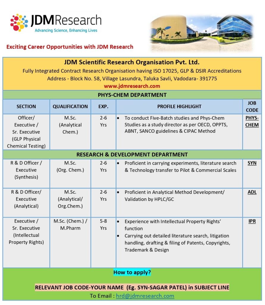 JDM Scientific Research Organisation Pvt. Ltd. – Hiring for Phys-Chem & R&D Departments | Apply Now