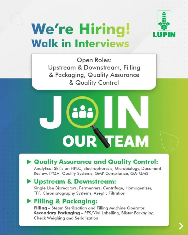 This is a great opportunity for professionals looking to build a career in biopharmaceutical manufacturing with a reputed global company like Lupin Limited.