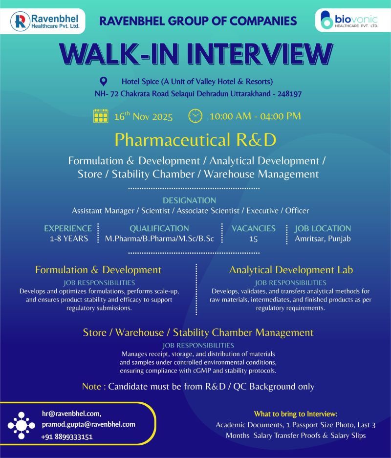 Qualification: M.Pharm / B.Pharm / M.Sc / B.Sc
