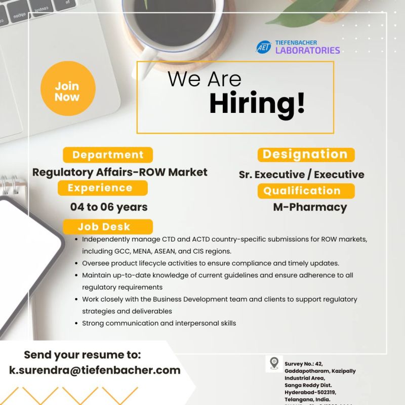 Tiefenbacher Laboratories is part of the globally renowned Tiefenbacher Group, known for its excellence in research-driven pharmaceutical development and manufacturing. The company focuses on providing innovative, high-quality, and affordable medicines across global markets. Tiefenbacher Laboratories fosters a collaborative work environment that empowers professionals to grow and contribute to global regulatory and development excellence.