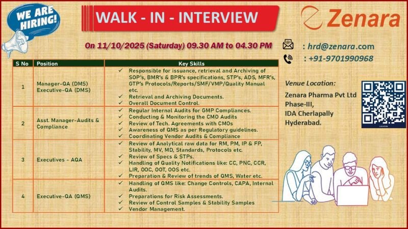 Location: Zenara Pharma Pvt. Ltd., Phase-III, IDA Cherlapally, Hyderabad